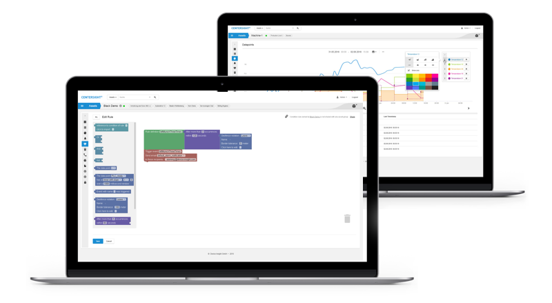 With the help of Device Insight's IoT building blocks for Condition Monitoring & Alarming, even complex monitoring rules can be configured quickly and easily. Based on event engine features, automatic alarms are triggered when incidents occur or thresholds are exceeded. As a result, service and maintenance are performed only as needed, reducing failures and downtime while increasing availability.